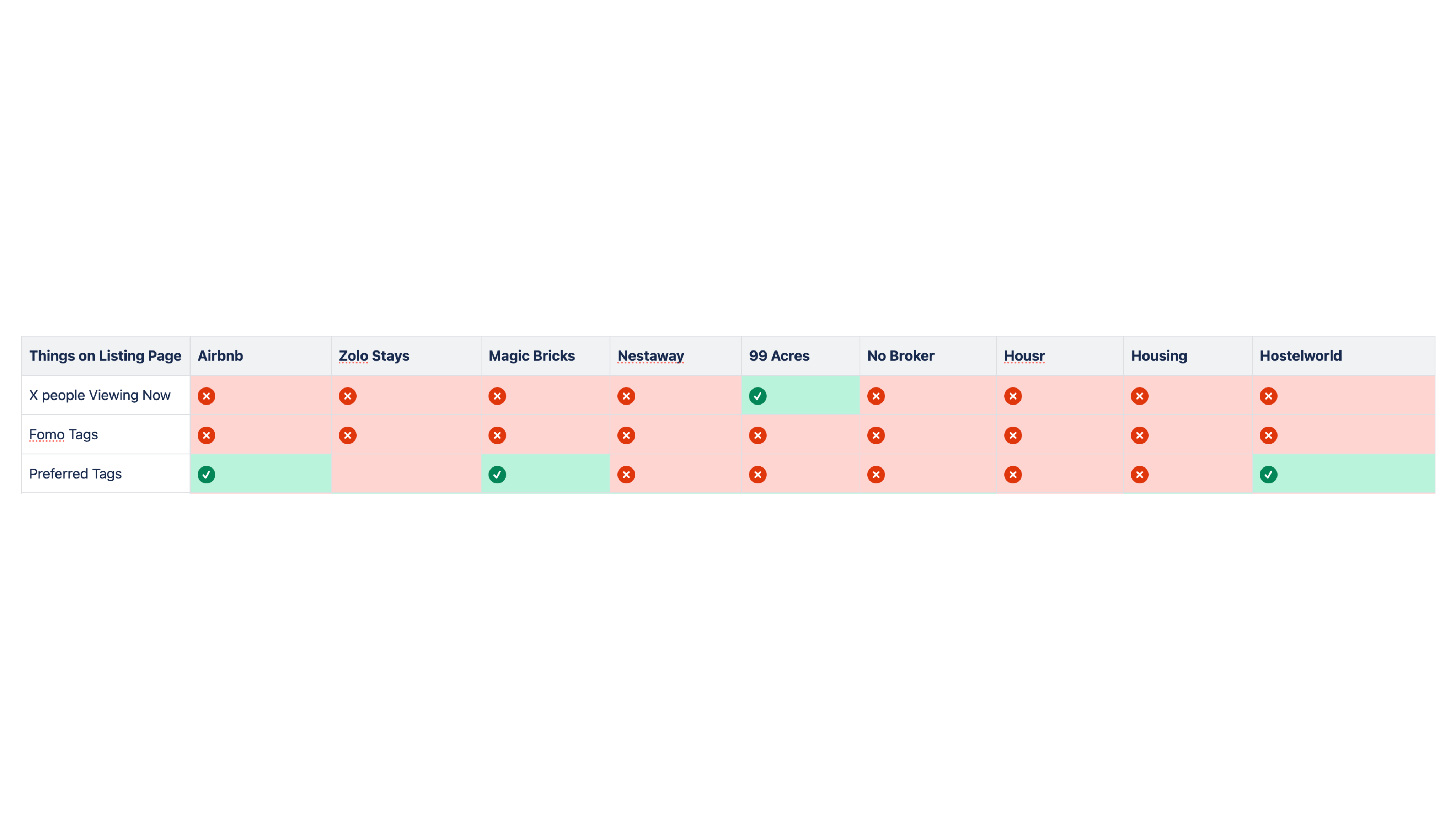 During the research I identified the company's direct & Indirect competitors and carried out a competitive analysis in the form of a feature comparison matrix